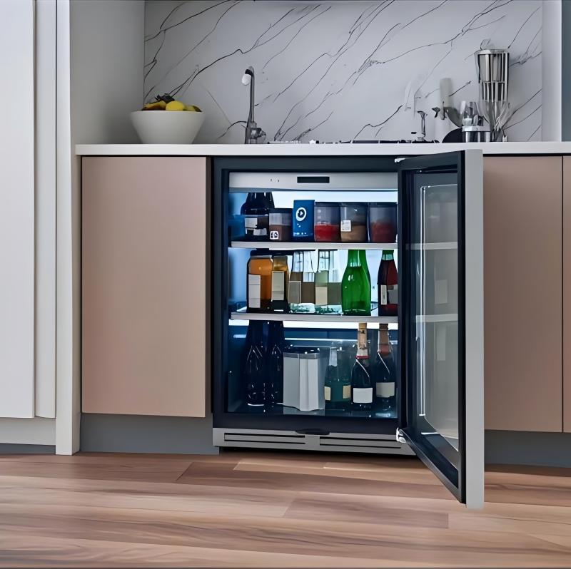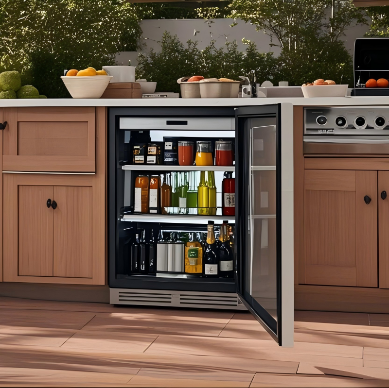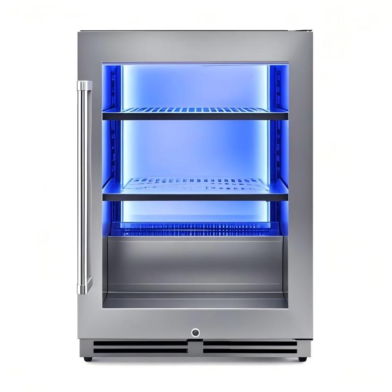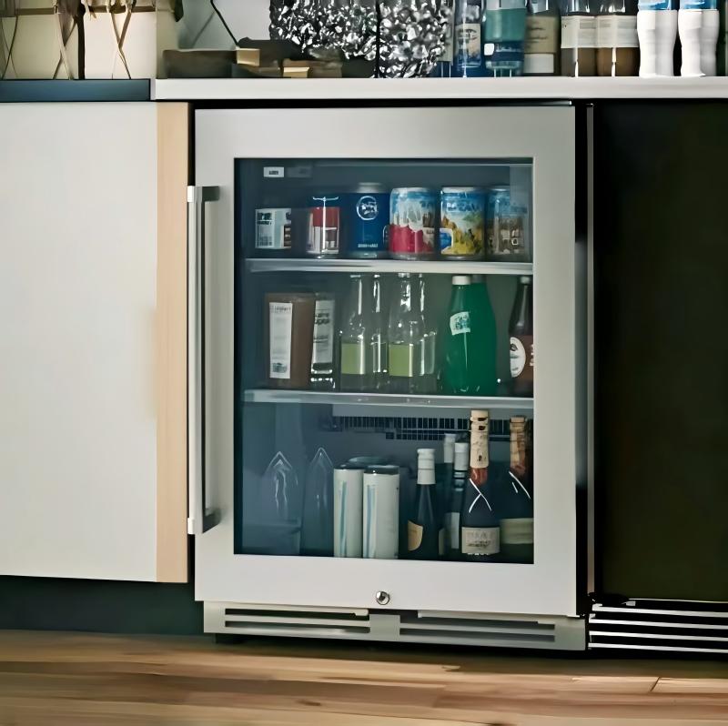 Brenor 24” wide glass door outdoor built-in beverage fridge
