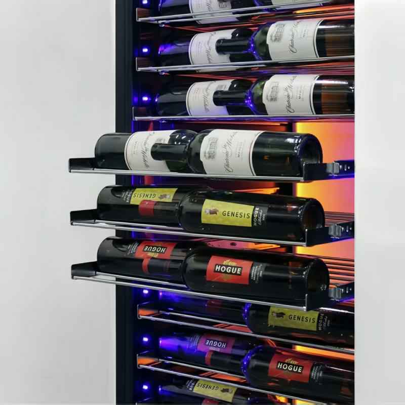 Brenor 24" wide commercial 160-bottle wine display cabinet with LED back wall light